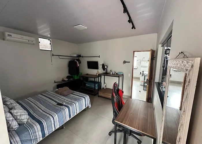 The 1-room Casa Novinha, Com Suite E Garagem Grande Uberaba is located around 10 minutes by car from the Torta House and offers Wi-Fi for either business or leisure.